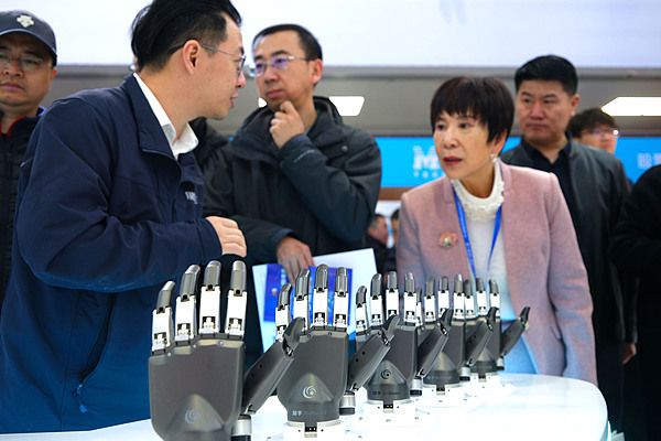 2026年3月18日,北京,AI Show 2026北京国际人工智能应用与机器人创新博览会展出的仿生机器手。