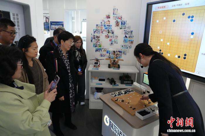 3月16日,毕业于中国科学大学的台湾博士在合肥体验人工智能教育应用。中新社记者 张俊 摄