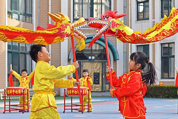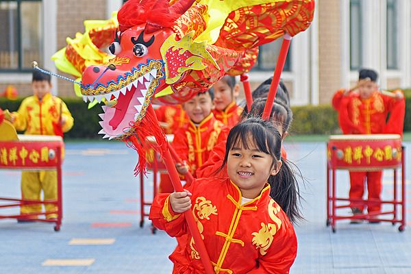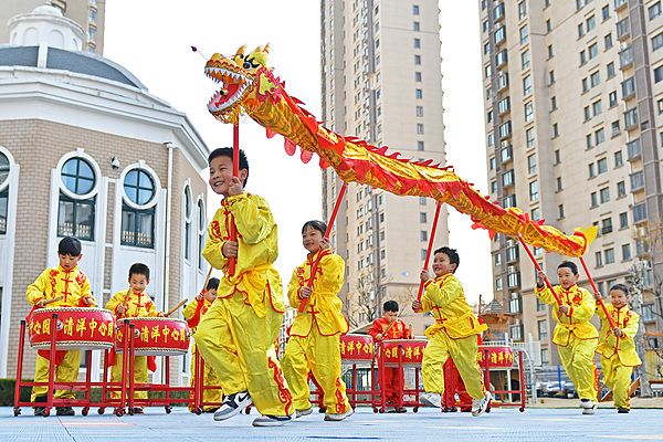 山东烟台:萌娃舞龙迎接“二月二”