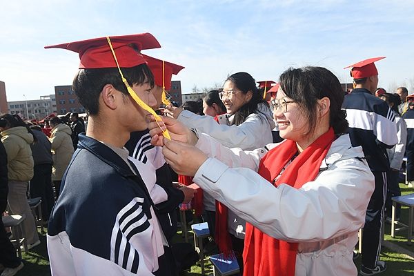 2026年3月18日,河北石家庄,新乐市第三中学高三学生成人仪式后合影留念。