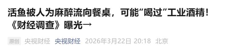 活鱼被人为麻醉流向餐桌,可能“喝过”工业酒精