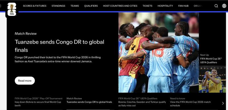 4月1日,2026年美加墨世界杯决赛圈48支参赛球队全部确定。国际足联官网截图