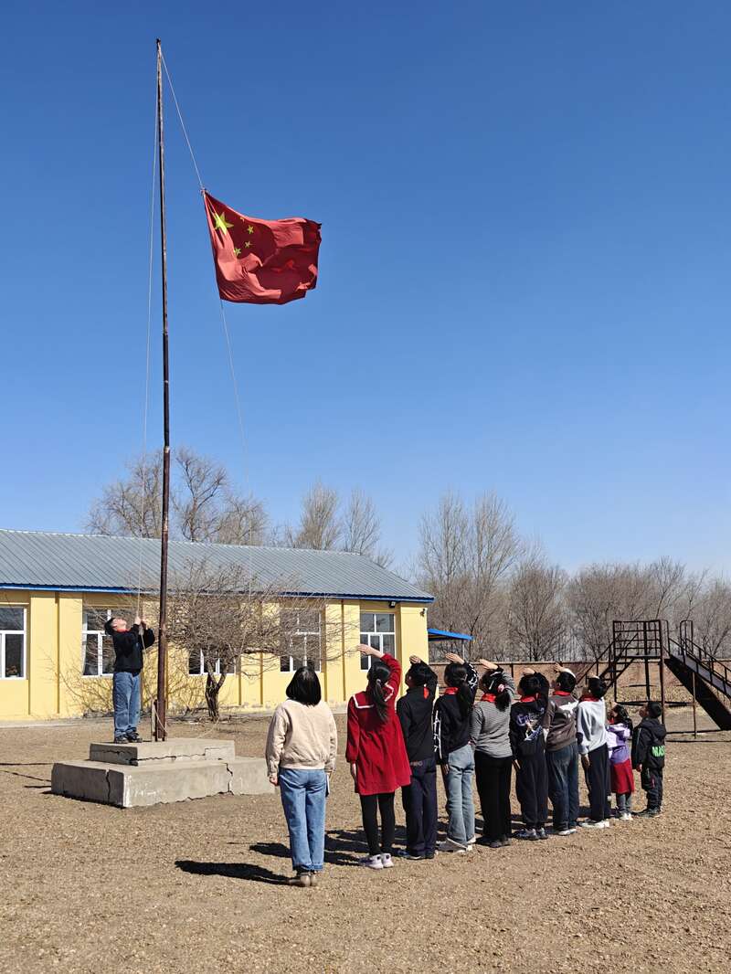 齐齐哈尔市梅里斯区卧牛吐镇光达希望小学举行升旗仪式。黑龙江省希望工程捐助中心供图