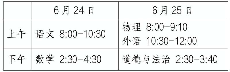 文化课考试时间为6月24日至25日。