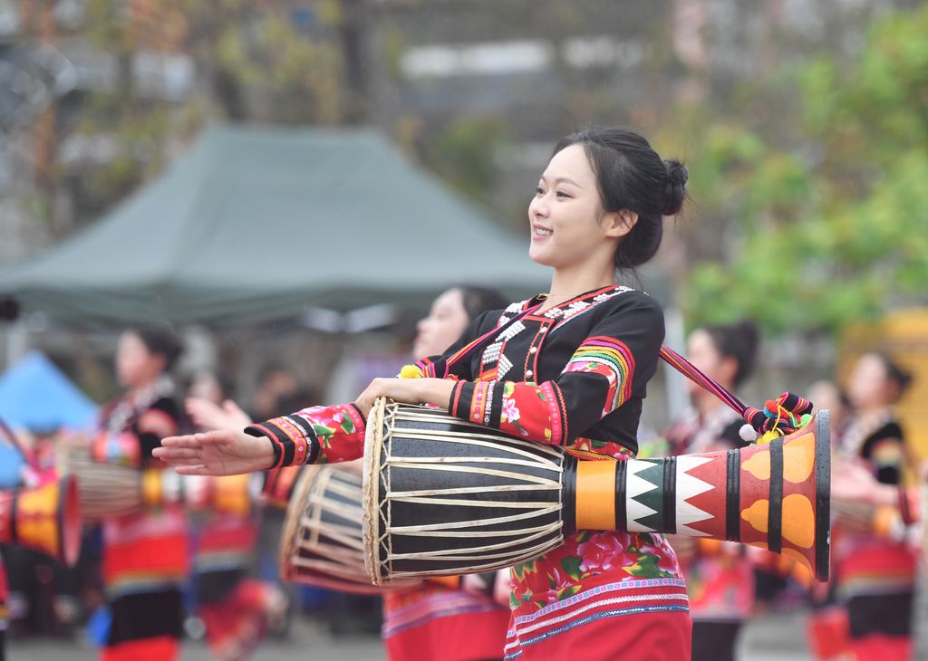 2026年4月10日,云南澜沧,云南省普洱市澜沧拉祜族自治县葫芦节启幕。2006年,澜沧拉祜族葫芦节成为云南省非物质文化遗产代表性项目。图为拉祜族鼓舞表演。 中新社记者 黄兴鸿 摄