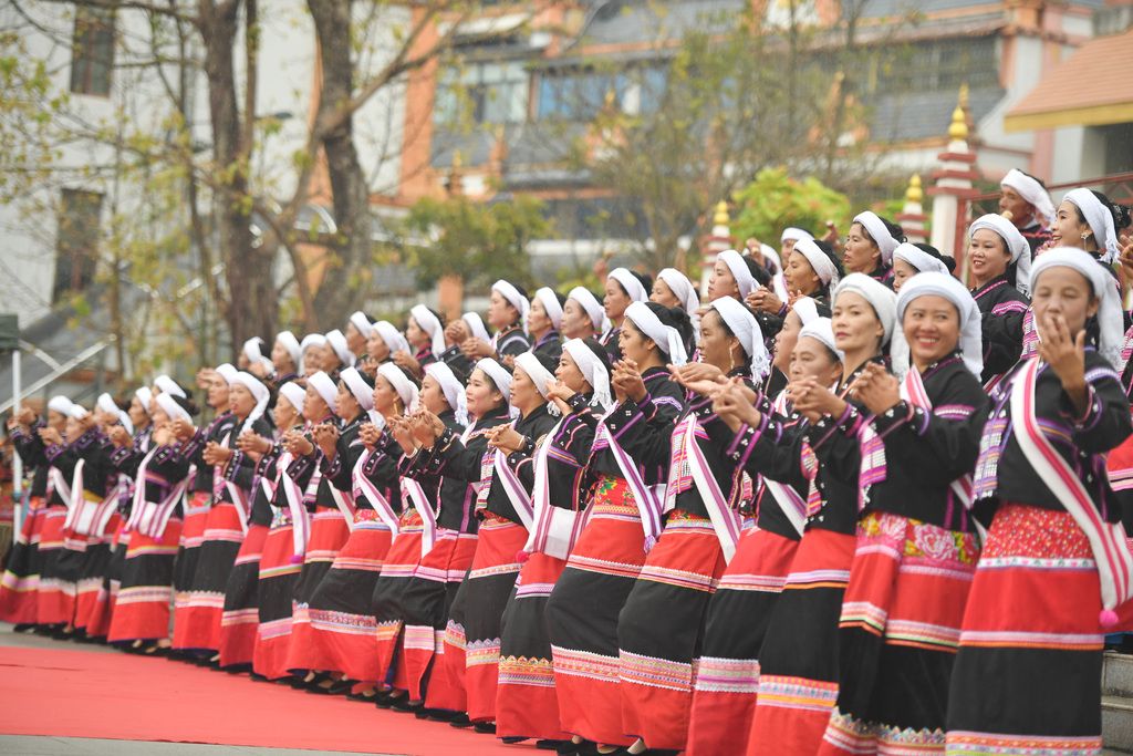 2026年4月10日,云南普洱,云南省普洱市澜沧拉祜族自治县葫芦节启幕。2006年,澜沧拉祜族葫芦节成为云南省非物质文化遗产代表性项目。图为民族服饰秀。 中新社记者 黄兴鸿 摄