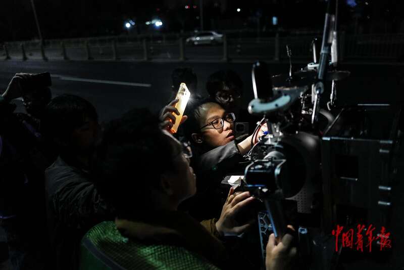 4月12日凌晨,北京经济技术开发区,2026人形机器人半程马拉松全流程全要素测试活动,正在调整设备的工作人员。据了解,作为全球首个人形机器人马拉松赛事品牌,在赛事规模上,本届赛事参赛队伍数量超百支,相比去年增长近5倍,涵盖自主导航、遥控两大类别,其中自主导航赛队近4成,参赛数量、技术类型、测试范围均创历史新高。中青报·中青网记者 赵迪/摄