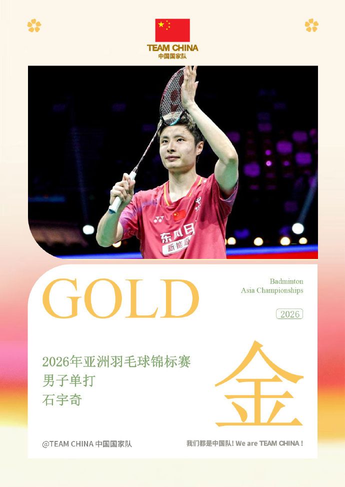 在刚刚结束的2026年亚洲羽毛球锦标赛男单决赛中,中国选手石宇奇2:0战胜印度选手阿尤什·谢蒂,首次夺得该项赛事冠军。