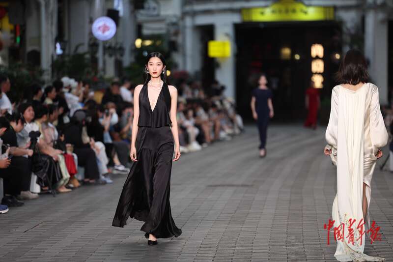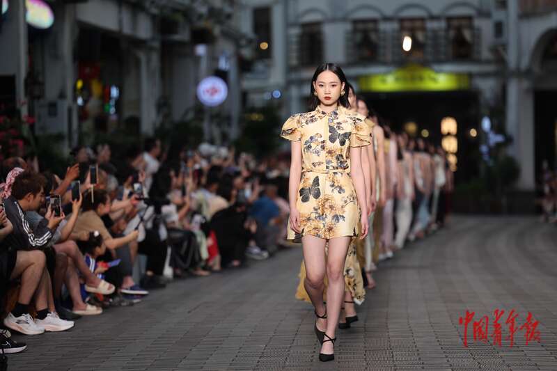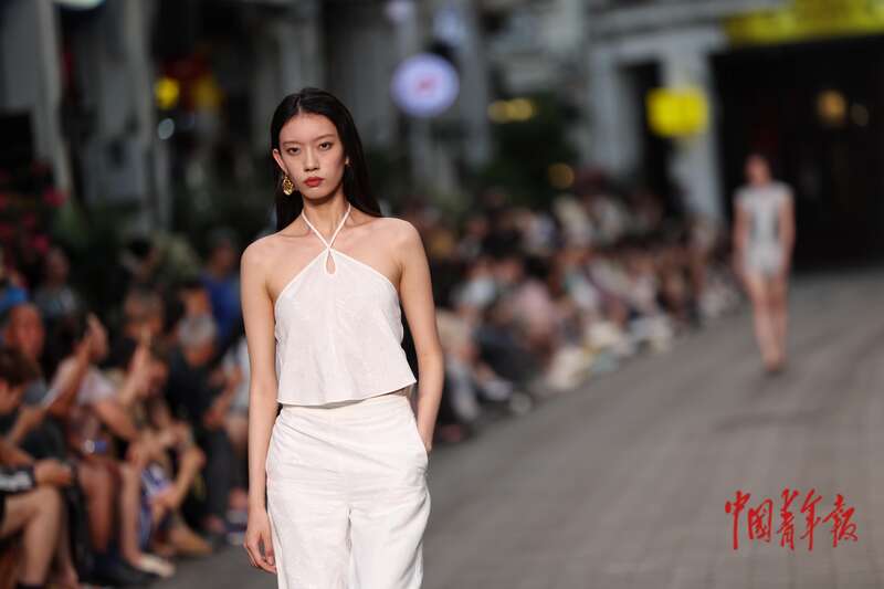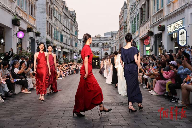 4月13日,海南海口骑楼老街,2026海南青年国际时装周秀场上,模特在走秀。中青报•中青网记者 曲俊燕/摄