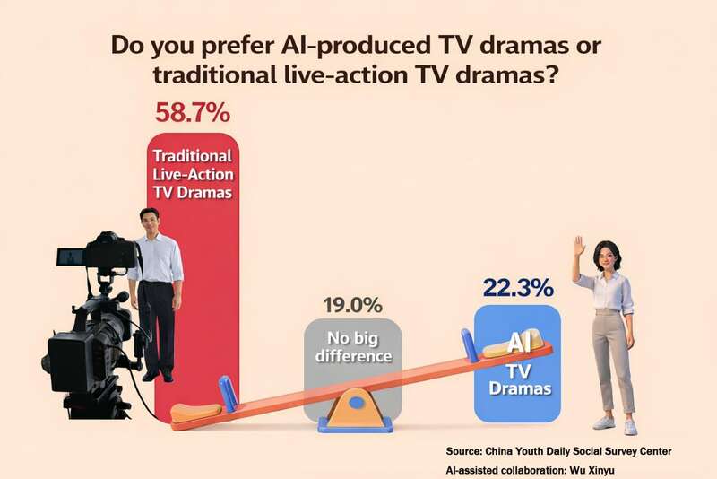 Nearly 60% of respondents still prefer traditional live-action dramas rather AI TV dramas and 60% said AI will impact screen arts, bringing both opportunities and challenges according to a new survey.On one hand, some respondents like Fan Yunchu believe that art requires long-term cultivation and cannot be achieved overnight through technological productivity alone. On the other hand,someAIGC entrepreneurs like Deng Shanwenthinkthat AI’s entry into the field has given rise to a new model of human-machine collaboration.