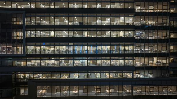 深夜,一处办公楼仍亮着灯,有人在加班。视觉中国供图