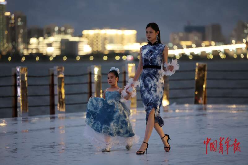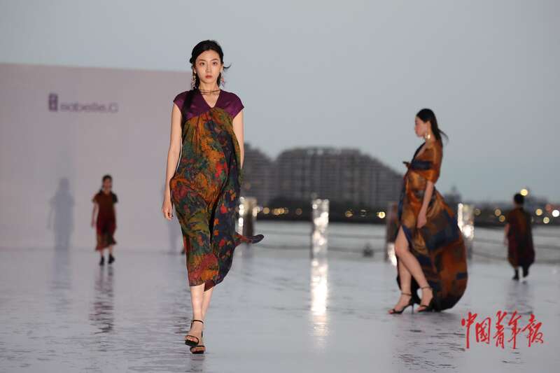 4月17日,海南海口,FUNBAY自在湾,伊裳ISABELLE.C品牌时装秀上,模特演绎新款时装。中青报·中青网记者 曲俊燕/摄