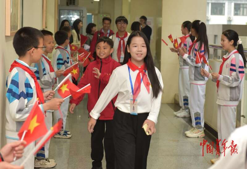 4月16日,北京,越南青年来华“红色研学之旅”之“不忘初心”研学营少先队分团来到北京市八一学校受到热烈欢迎。中国少年报 赵亚楠/摄