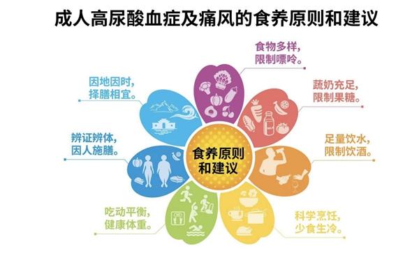 成人高尿酸血症与痛风的食养原则与建议。图片来源:《成人高尿酸血症与痛风食养指南(2024年版)》