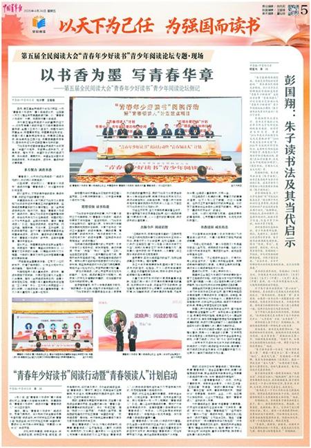 日前,在第五届全民阅读大会“青春年少好读书”青少年阅读论坛上,与会嘉宾共同探讨青少年阅读,为青少年成为全民阅读“源头活水”建言献策。在“青春年少好读书”主题分享会暨“青春领读人”计划全国示范活动中,举行了一场关于“朱子读书法”的古今对话,青少年在对话分享中感悟圣贤精神、擦亮映照成长的明镜。