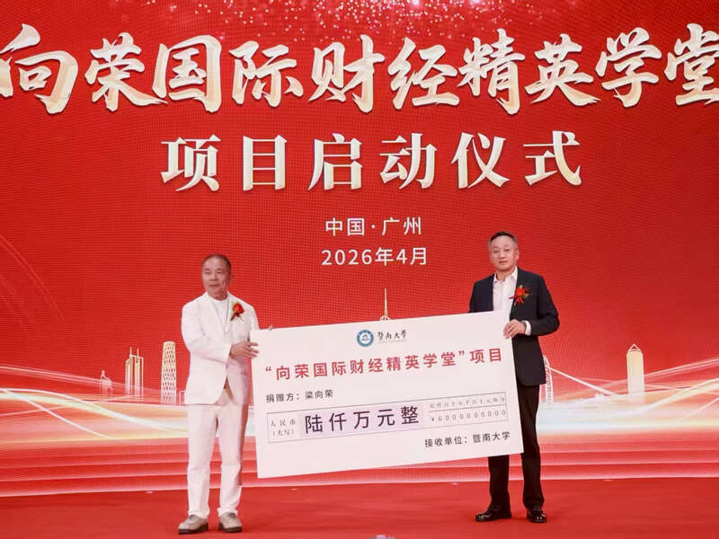 中国青年报客户端讯(陈浩文 中青报·中青网记者 林洁)4月23日,“向荣国际财经精英学堂”项目在暨南大学启动。香港慈善家、香港向荣投资有限公司董事梁向荣向暨南大学捐赠6000万元。