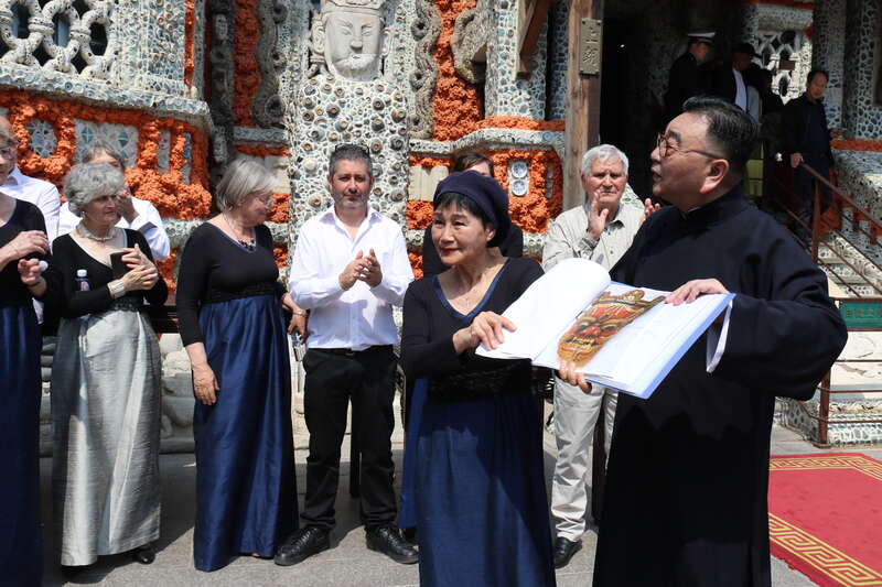 中国青年报客户端讯(中青报·中青网记者 胡春艳)4月23日,法国“亲音”合唱团一行到访位于天津五大道的瓷房子博物馆,开展文化交流与文物捐赠活动。合唱团成员梅玲将其珍藏多年的近30件古面具无偿捐赠给瓷房子博物馆,其中包含贵州傩堂戏古面具等流落海外的中国文物,另有部分异域特色面具捐赠。