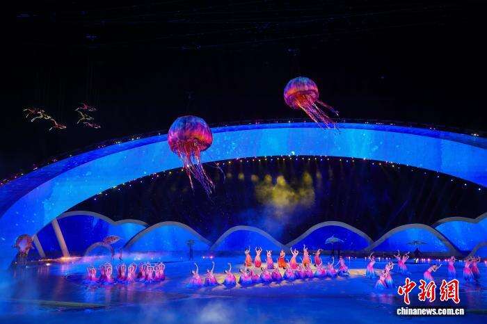 开幕式上,“深海逐梦”篇章将绿色理念推向情感层面。充气水母、儒艮、海龟等海洋生物“游”进演出现场,与观众贴脸互动,直观传递“人与自然和谐共生”的海南态度。焰火表演选用低烟环保烟花,在夜空绽放的同时最大限度降低环境影响。