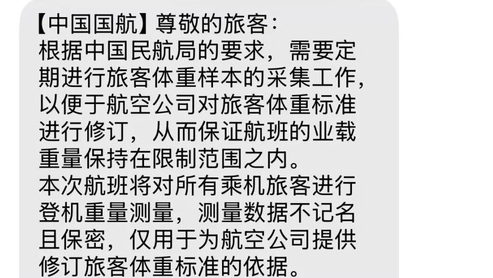 航空公司定期采集旅客体重数据是国际通行做法。