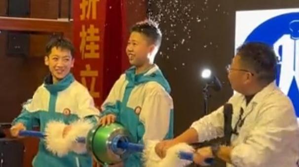 In the physics class, the teacher demonstrated "Flowers Dancing on the Head" on the spot.