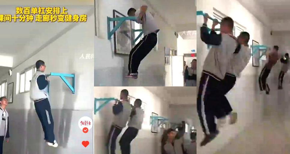 数百单杠安排,课间走廊秒变健身房