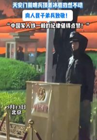 #青春向西而歌 5月13日晚,北京多地区突降冰雹,天安门前哨兵顶着冰雹岿然不动,向人民子弟兵致敬!网友:“中国军人铁一般的纪律值得点赞!”