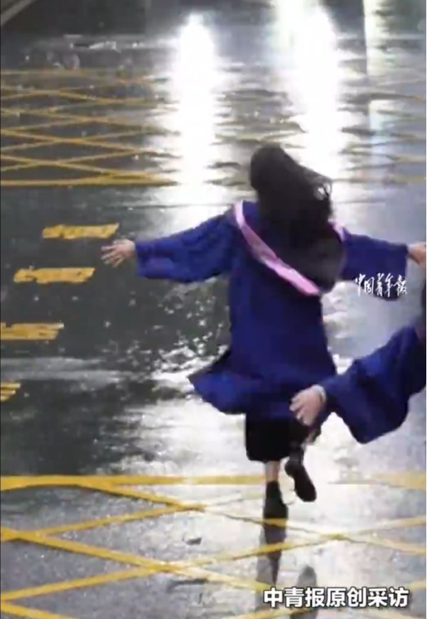 女生分享毕业季与同学一起淋雨的视频,怀念美好的青春时光。#毕业季 #青春的样子 #不要感冒