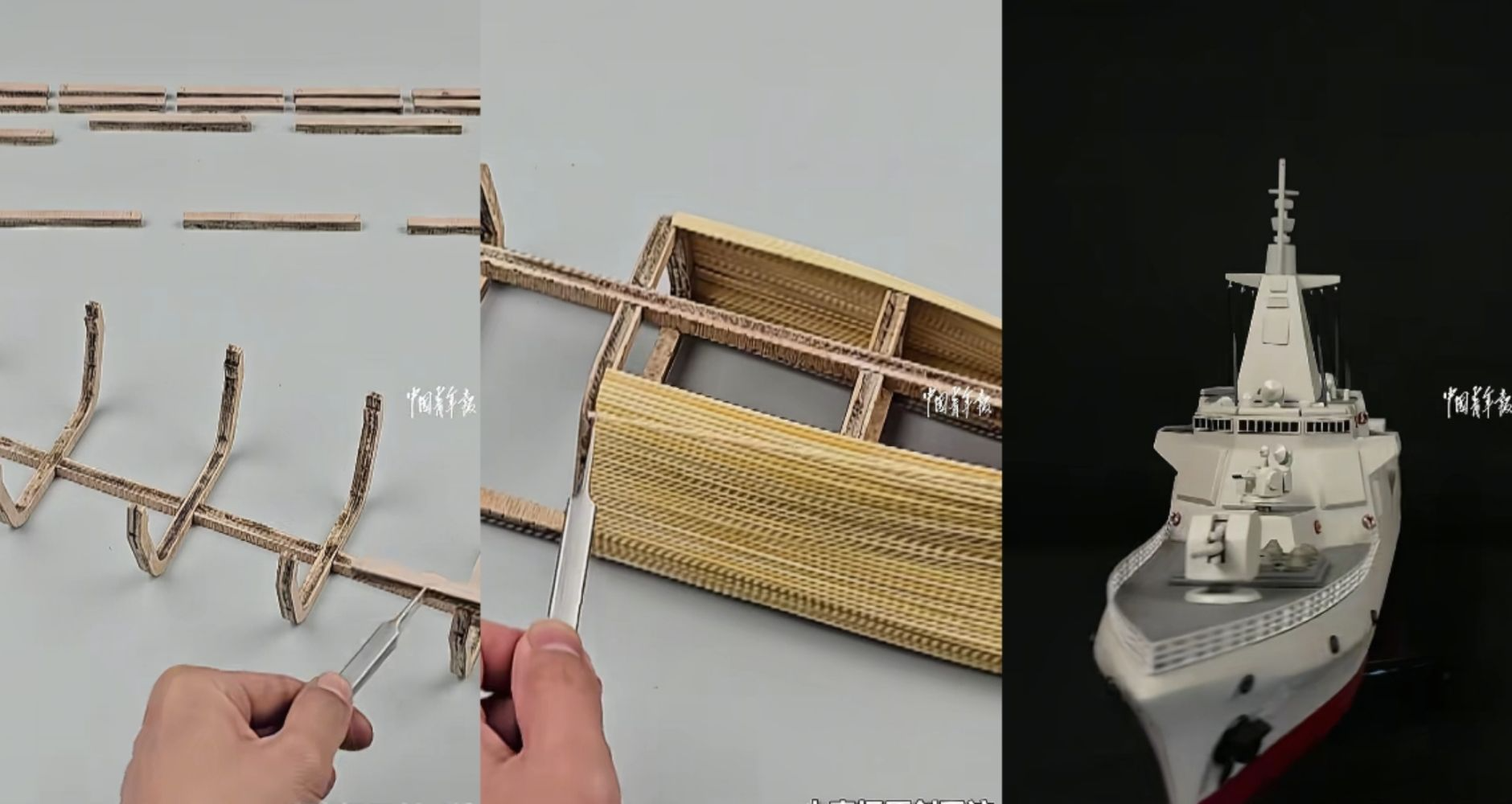 “为祖国的强大感到深深的自豪!”90后小伙用竹签制作中国海军055型导弹驱逐舰模型,细节满满!#手搓