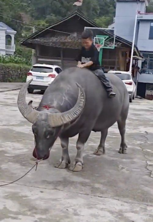 温馨一幕!现实版“牧童骑牛” 阳光洒落 老牛温顺孩童自在!#青春向西而歌 #我的青春我职道