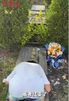 少年高考结束后,马不停蹄地去妈妈墓碑前跪拜,考试时还将妈妈照片贴在衣服上。#加油孩子@上饶波仔