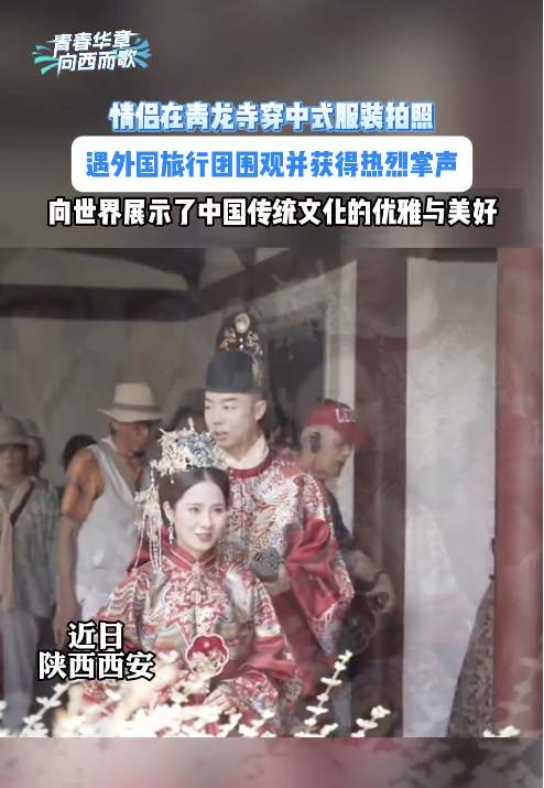 情侣在青龙寺穿中式服装拍照,遇外国旅行团围观并获得热烈掌声,网友:这一幕向世界展示着中国传统文化的优雅与美好。#青春向西而歌 #我的青春我职道 #青知讲说人