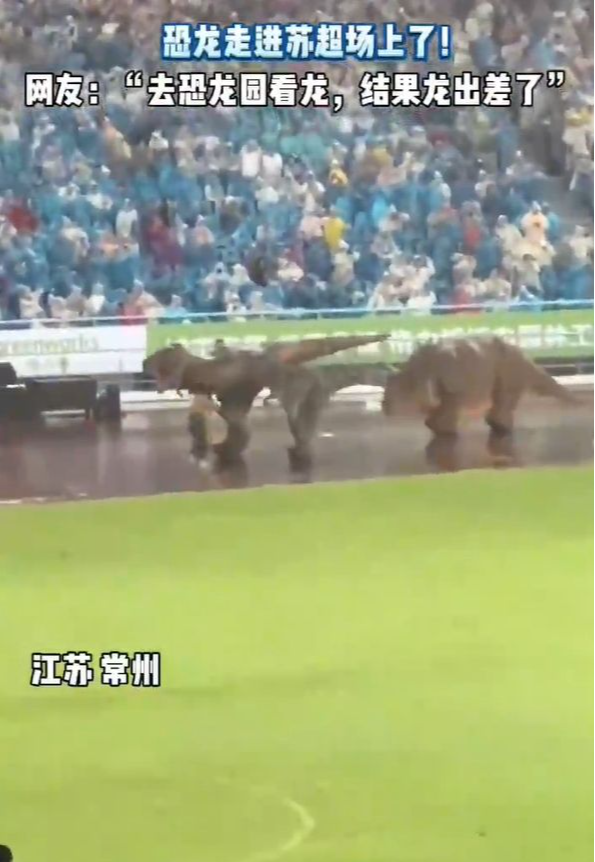 恐龙“走”上苏超赛场! 网友:去“恐龙园”看龙,结果龙出差了 #我的青春我职道