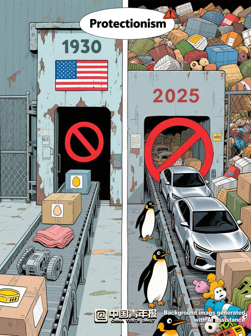 The sweeping U.S. tariffs signal a return to protectionism that could trigger recession and global economic damage, analysts warn. But no one wants to go through another depression. The U.S. should stop using tariffs as a weapon to suppress world trade and economy, and stop undermining the legitimate development rights of people around the world. (Text/Ma Ziqian, Picture/Chen Yulong)
