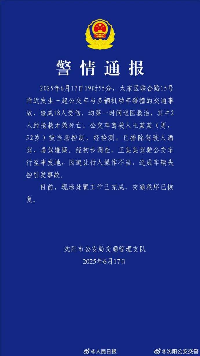 沈阳一公交车因操作不当车辆失控,致2死16伤