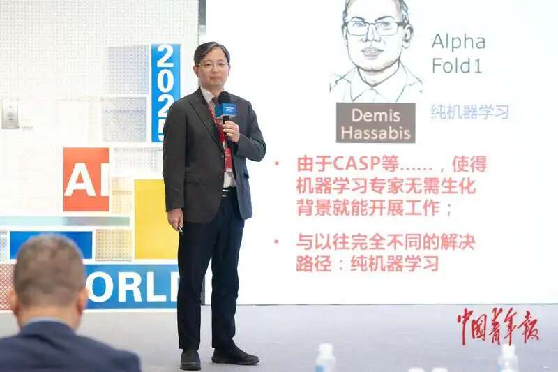 ▵7月16日上午,江苏苏州,2025年世界青年发展论坛人工智能与科技创新主题论坛,国际人工智能联合会理事会主席、南京大学副校长周志华发表主旨演讲。中青报·中青网记者 李隽辉/摄