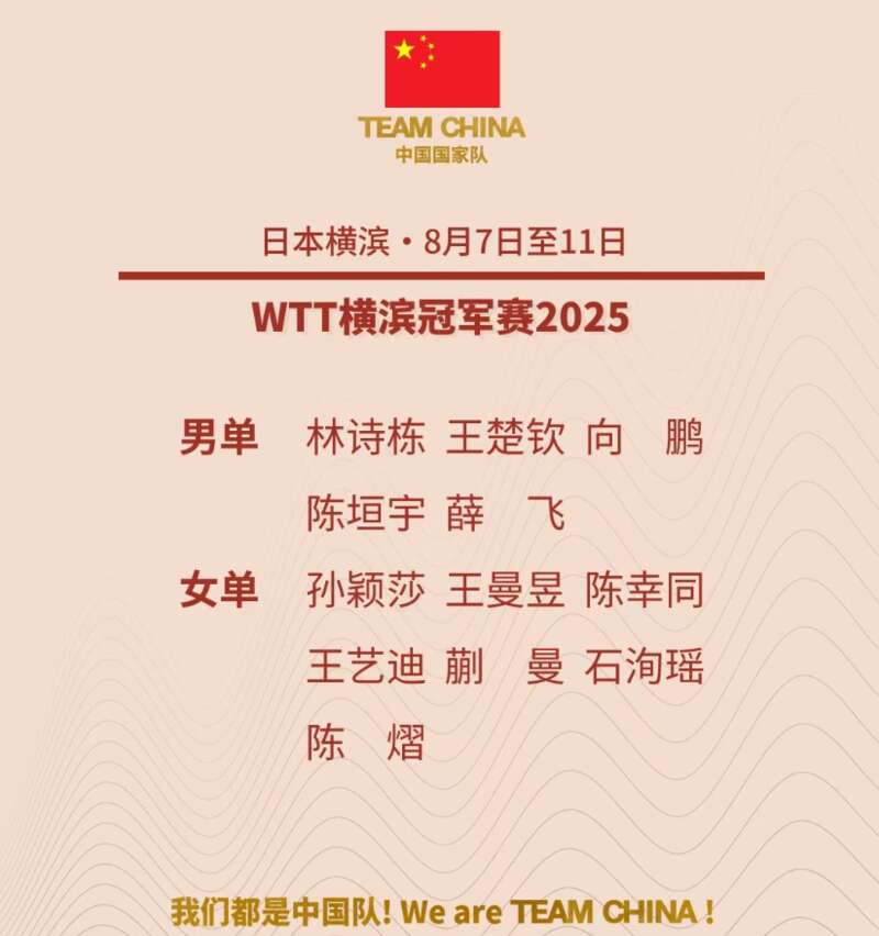为国乒加油!WTT横滨冠军赛首轮赛程出炉