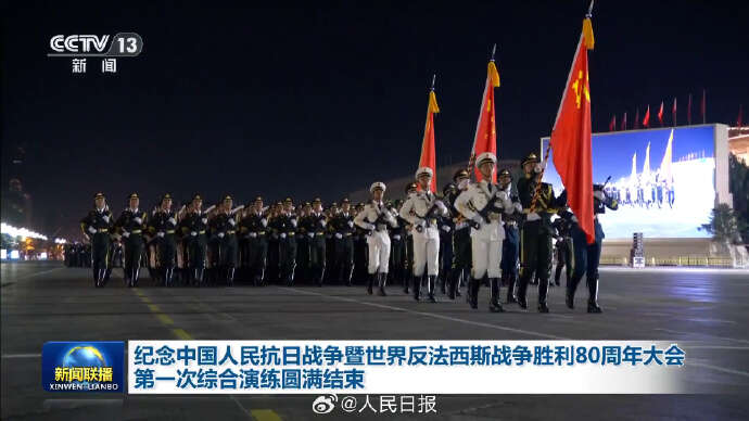 综合央视新闻、人民日报,8月9日夜间至8月10日凌晨,北京天安门地区举行了纪念中国人民抗日战争暨世界反法西斯战争胜利80周年大会第一次综合演练,约2.2万人参加演练及现场保障工作。