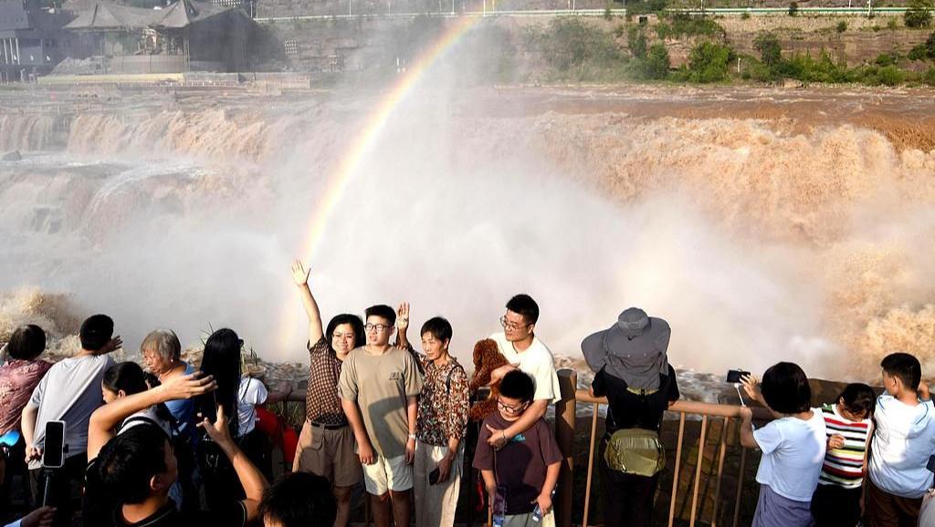 山西临汾:黄河壶口瀑布现“彩虹桥”景观