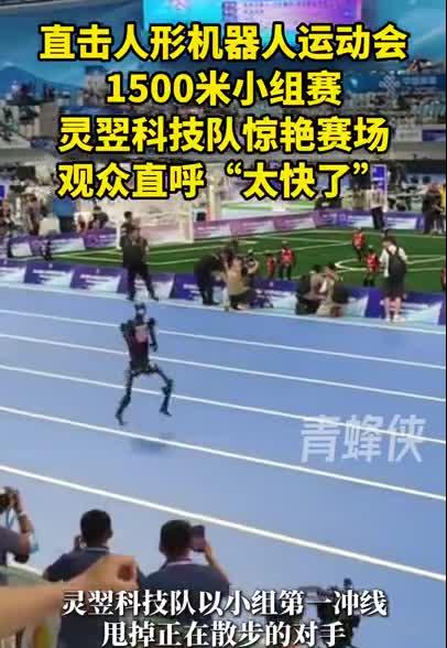 “黑皮”机器人1500米冲刺:甩双臂大迈步超越对手,观众直呼“太快了”#机器人