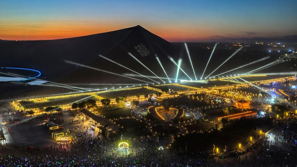 甘肃敦煌:鸣沙山月牙泉景区上演万人星空演唱会
