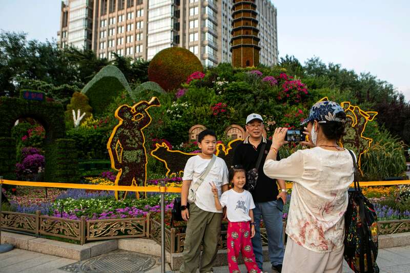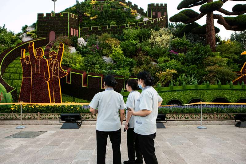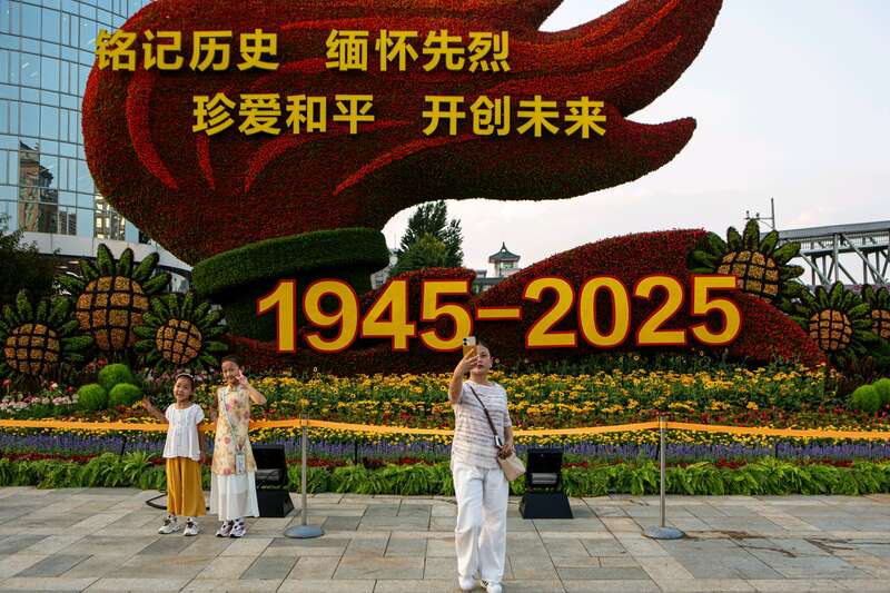 纪念抗战胜利80周年主题花坛亮相北京长安街