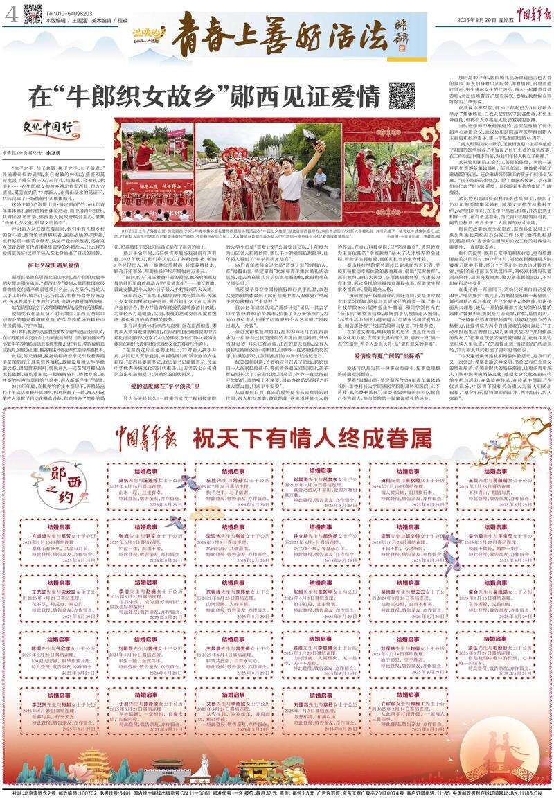 这场主题为“海誓山盟·情定郧西”的2025年青年集体婚礼暨传统婚俗体验活动,由中国青年报社、共青团湖北省委、郧西县人民政府联合主办,聚焦“传承七夕文化,倡导文明婚恋”。