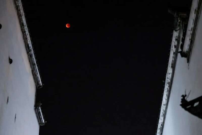 昨天夜间至今天凌晨,月全食现身,天空出现少见的“红月亮”。