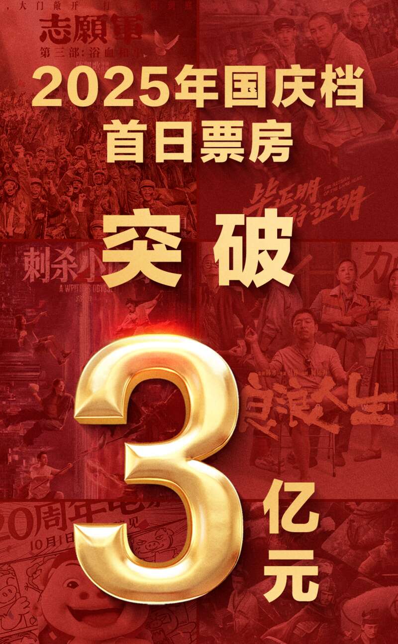 据网络平台数据,截至1日24时,2025年电影国庆档首日票房超3.22亿元。