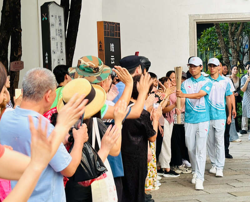 10月16日,十五运会和残特奥会圣火火种走进广州荔湾永庆坊,受到了市民游客的热烈欢迎。中青报·中青网记者 林洁/摄