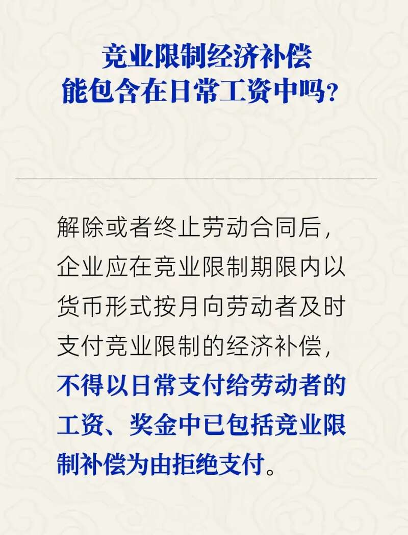 就业权益|竞业限制经济补偿能包含在日常工资中吗?