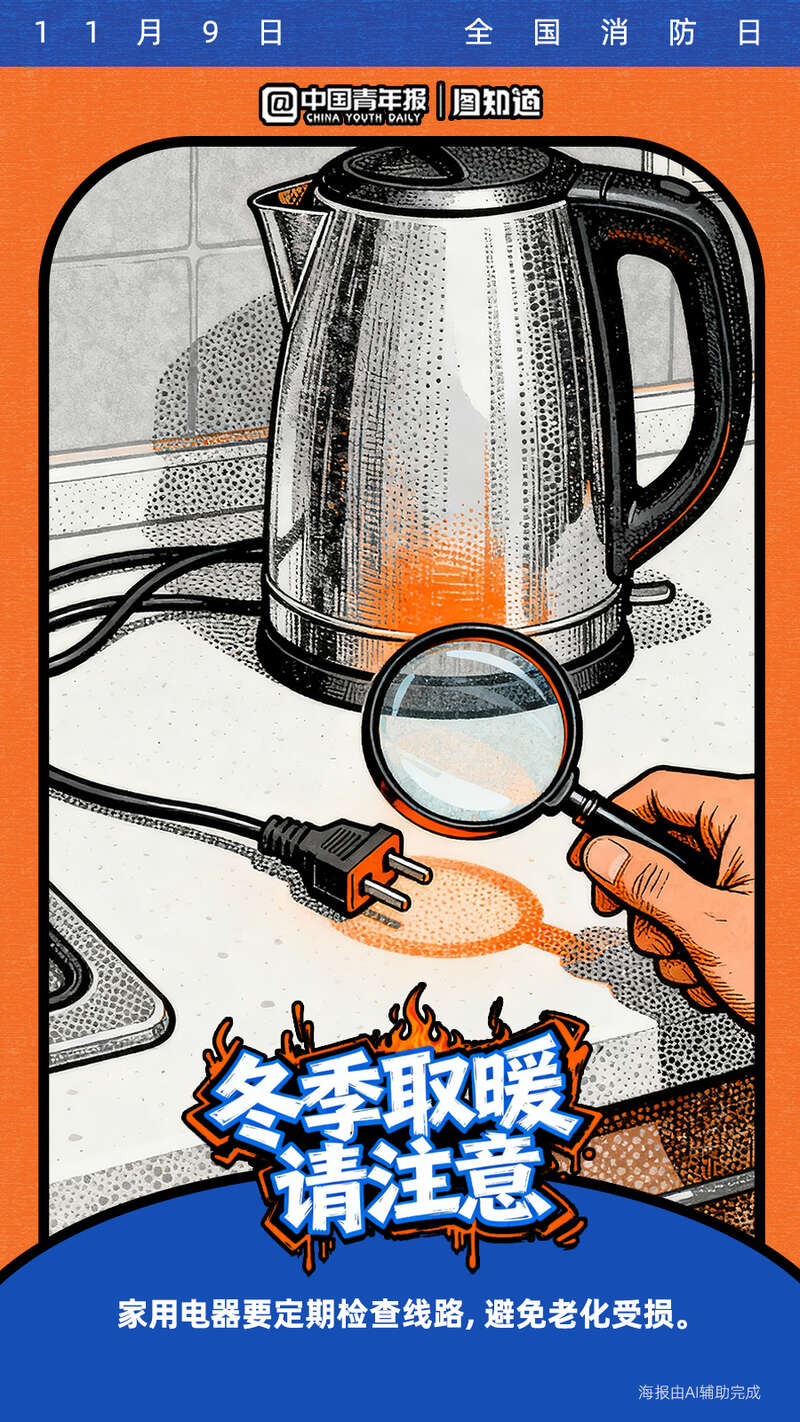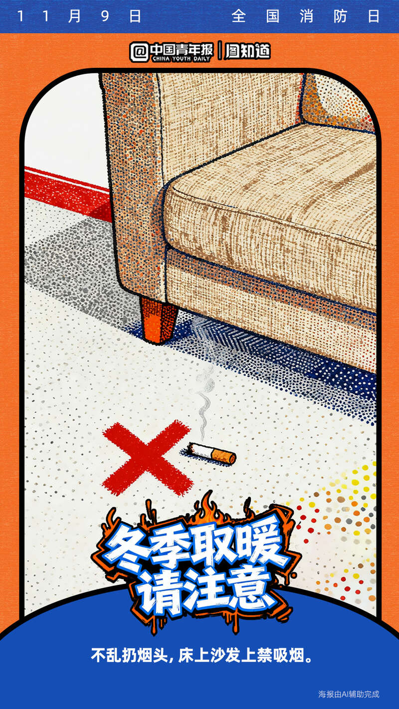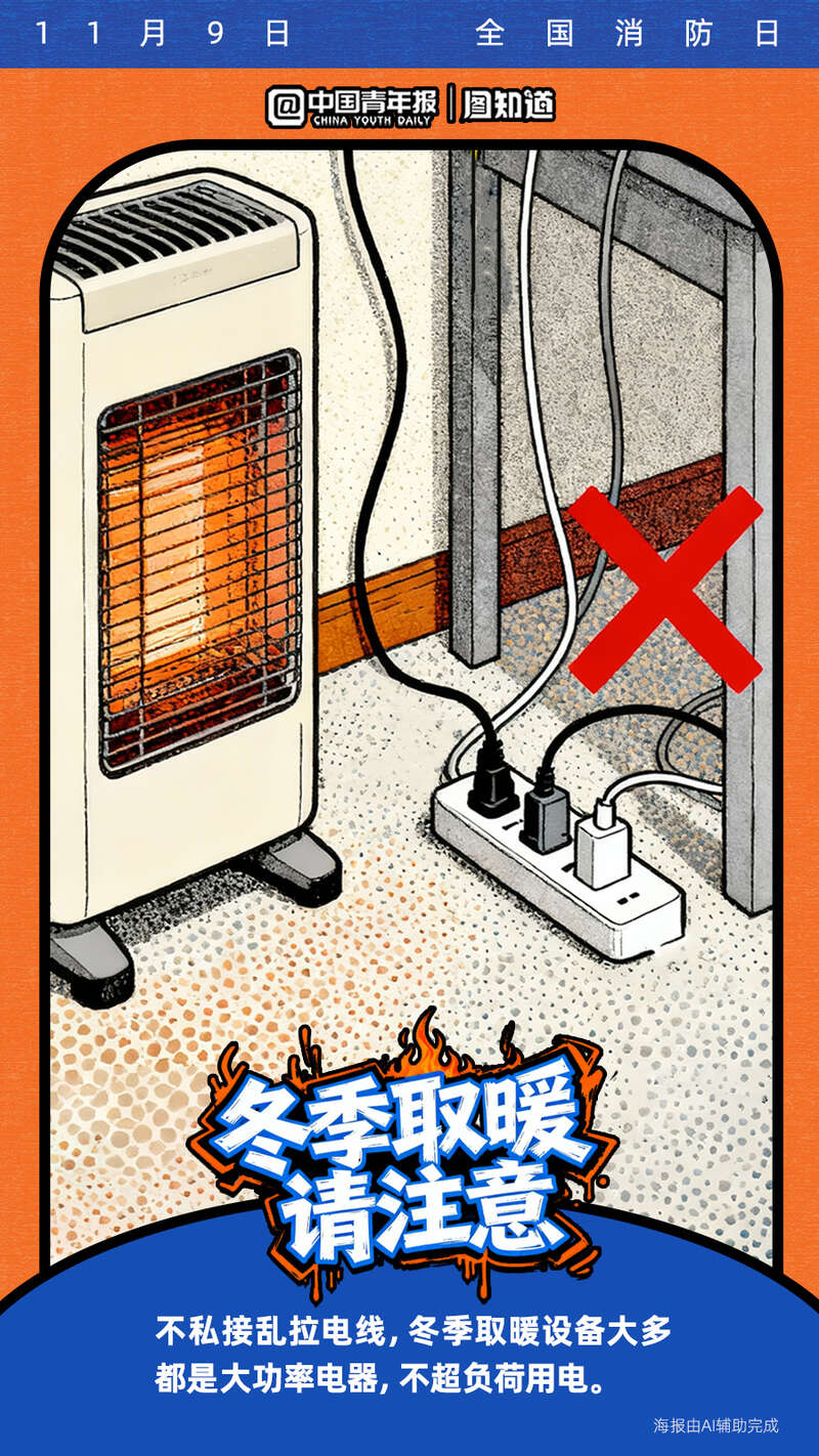 今天是11月9日全国消防日。寒冷的冬季已经到来,很多取暖器如果被不当使用将暗藏隐患!电热毯、取暖器等怎么用才安全?遇煤气泄漏该如何处理?收藏这份冬季取暖安全指南,速戳海报get消防安全知识点!