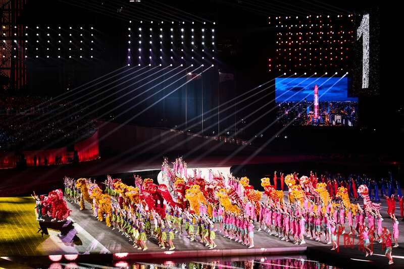 11月21日晚,广东深圳,深圳前海欢乐剧场,第十五届全国运动会闭幕式上的文艺展演。中青报·中青网记者 田嘉硕/摄