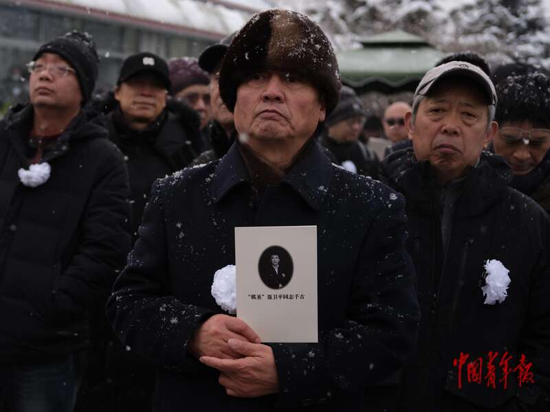 1月18日上午,聂卫平遗体送别仪式在北京市八宝山殡仪馆东礼堂举行,“棋友”雪中送别。聂卫平于2026年1月14日逝世,享年74岁。作为中国围棋的标志性人物,他曾在1984至1988年间率领中国队在中日围棋擂台赛中豪取11连胜,被授予“棋圣”称号。中青报·中青网记者 李隽辉/摄