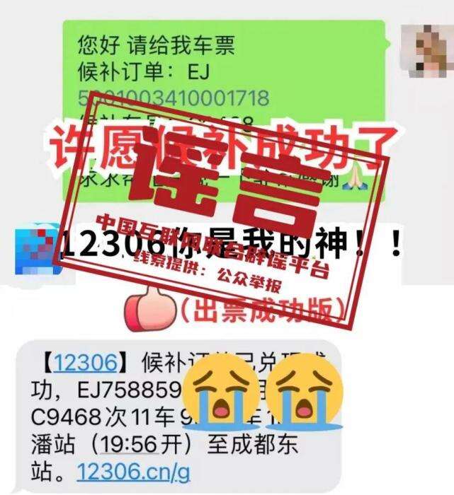 真相:2025年4月,有网友发帖称,“通过12306微信公众号发送‘许愿候补成功’‘候补车次***,候补单号***,帮我兑现一下吧’等消息,能成功买到车票”。